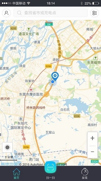 1、首页中选择附近的充电站,然后点击软件首页最下方的扫一扫功能按钮,扫描充电桩上的二维码