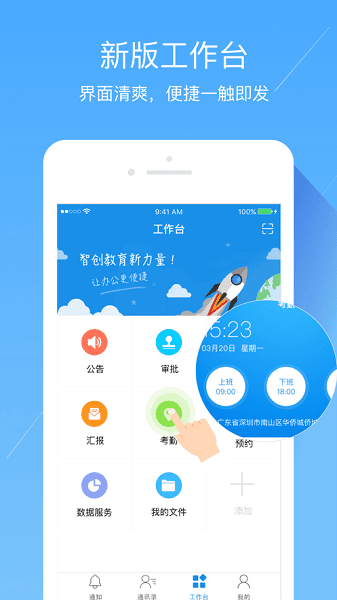 面向全体教职工用户打造的移动办公软件,工作汇报、通知公告、会议室预约、学生资料管理、课表查询等功能都有,同步支持PC端、web端接入使用,办公数据同步更新,让广大教职工灵活使用。