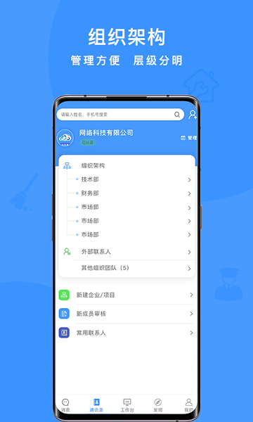 人事信息管理,打开这里通讯录能够找到内部各个组织架构的联系人;