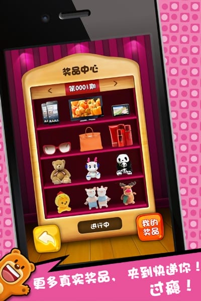 这是款全3d操作游戏,多达百款超萌娃娃,满足你的收集欲!当你积攒套装组合后, 这些娃娃将兑换真实奖励, 史无前例的百万真实大奖-每期12种真实奖品!各种娃娃夹到就是你的, 赶快开始你的幸运之旅吧!