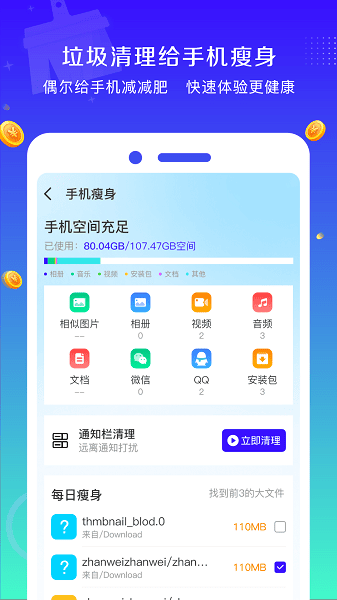 全新升级手机缓存清理,更快清除无用文件,安全智能清理手机垃圾。