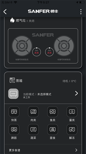 远程控制帅丰集成灶,实时的匹配设备功能,手机端控制风力、火力、光源亮度等,让用户使用起来更加的便捷,更好的服务于用户。
