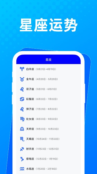 2、星座运势,每天都可以随时去查看,星座详情都是可以随时去获取;