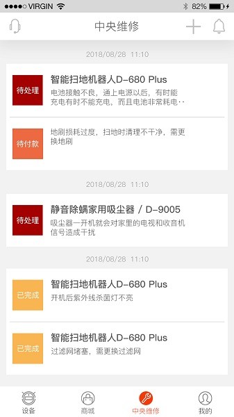 看到每一个设备目前的工作详细情况,知道清扫的面积,剩余的电量,使用的时间等。