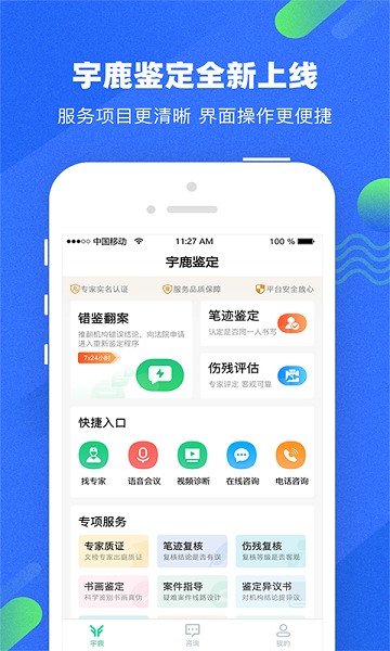 宇鹿鉴定app是一款专业的鉴定咨询服务软件,使用其能够快捷进行司法鉴定。专家机构鉴定真伪,给到鉴定意见书。随时随地提供服务,快速鉴定出结果。需要的用户不要错过哟!
