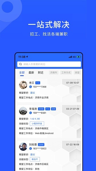 满足了招工方和找活人员的使用需求,可轻松找人、找活