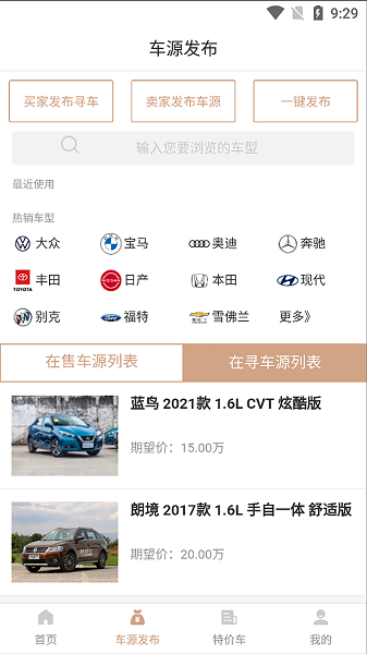 找车源:可以按品牌、车型款式、指导价、颜色、区域等类型快速搜索您感兴趣的车源。