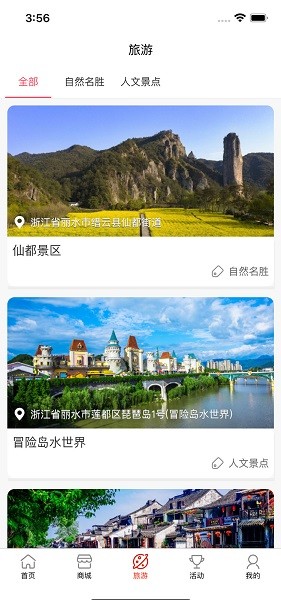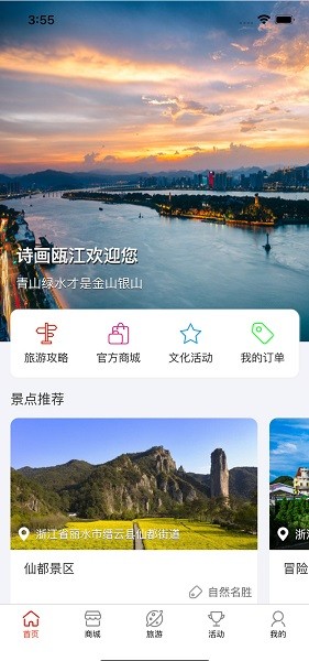 诗画瓯江旅游一站式搞定,旅游景点推荐、地方文创产品销售、特色文化活动展播。旅游景点根据自然名胜和人文景点展示瓯江周边主要景点,进入后可查看图册、位置、简介以及关联商品等。商城部分主要销售手工艺品、文创商品及书画等类目商品。