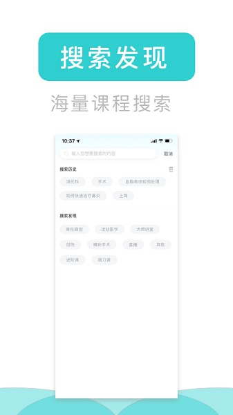 智能搜索功能,只需输入医学关键词,即可查找教学视频、文献及专家