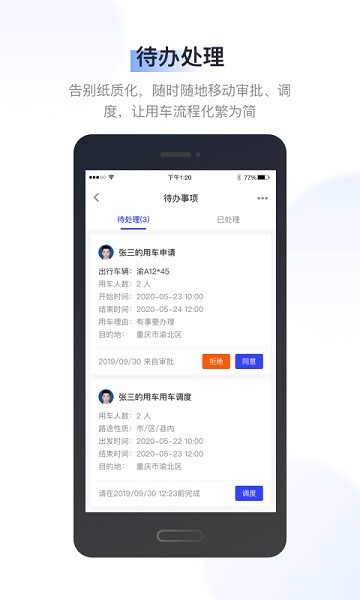 -告别纸质化,跨入数字化办公流程,随时随地移动审批、调度,让用车流程化繁为简。
