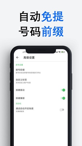 自动拨打电话:依次自动拨号,拨号后备注标记、添加客户,方便管理资料。支持自定义客户标签和拨号前缀。
