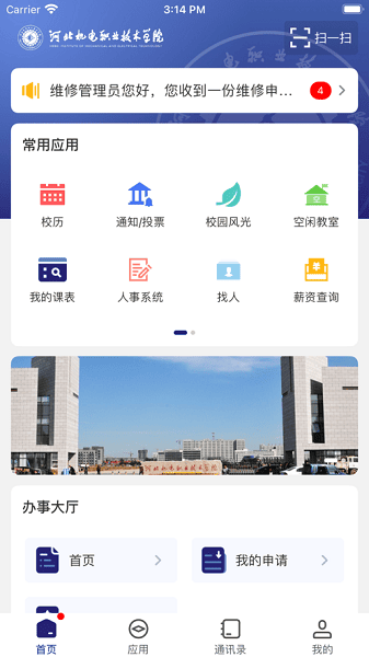 河北机电职业技术学院app作为校园的移动服务平台,这里汇聚了校园生活中的各类服务,在学习与办公上也能为老师,学生带来极大的帮助!