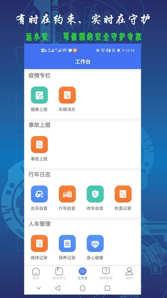 司机端app可辅助司机完成日常行车的安全管理,实现运行档案的便捷化、数字化。