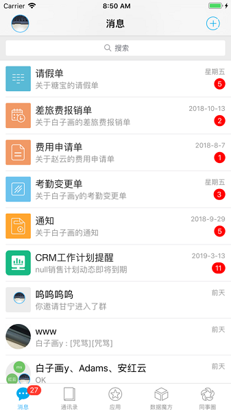 通讯录:企业组织结构一目了然,电话、短信、邮件、一气呵成。