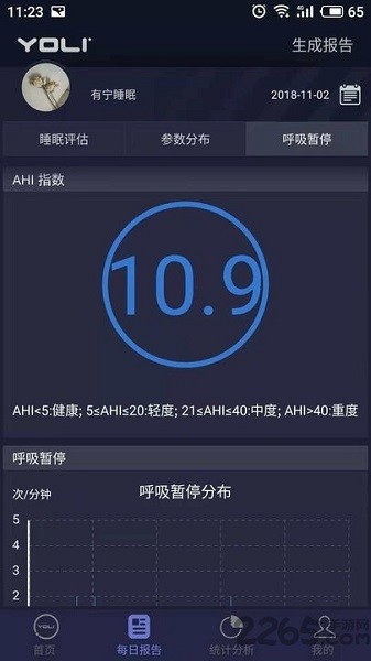 ·APP将报告数据分为睡眠评估、参数分布与呼吸暂停三类;