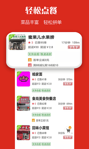 3.主要面向同城的配送服务,大家想要的美食、水果等外卖服务都能满足;