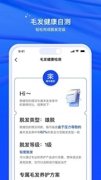 2、就能够快速了解自己的毛发情况,并得到个性化的毛发保护方案的应用。