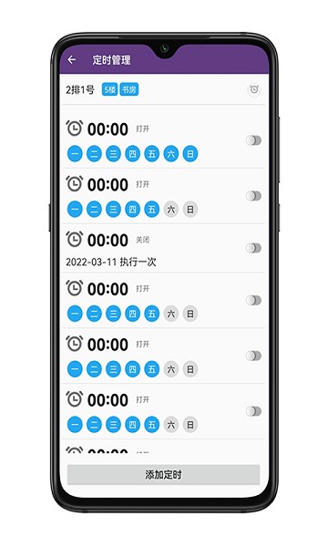 多组定时支持,可对设备增加多组定时,每个定时交替开/关设备,达到对电气间