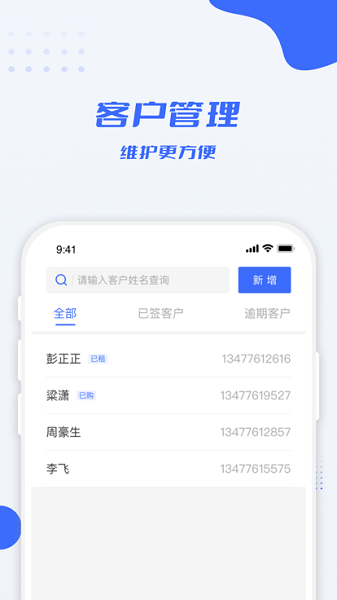 维护客户关系;可以帮助租赁公司更好的管理车辆,创建或加入一个企业,对企业客户、车辆、员工进行管理。