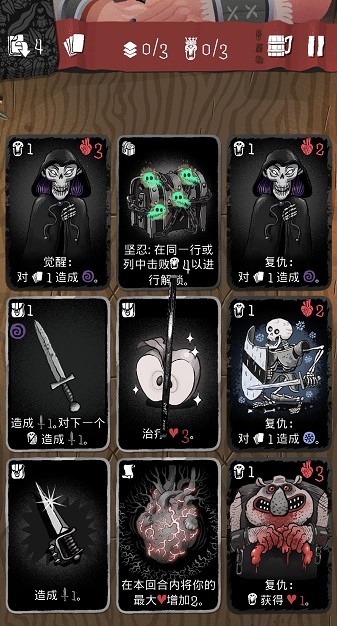 2、每个角色都有自己的卡牌和效果,挑战你的智慧、勇气和机智;