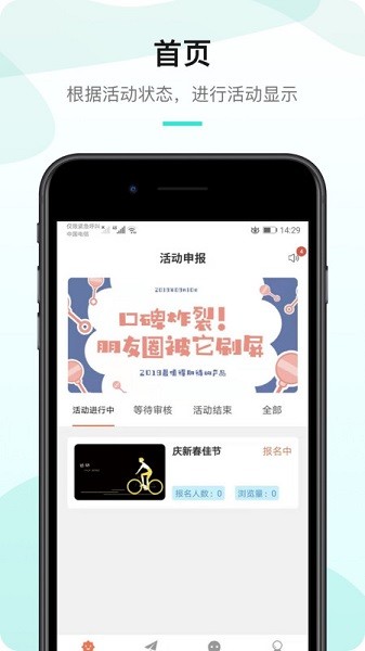 展示了各种不同的活动状态,进入首页里面就可以进行活动显示。