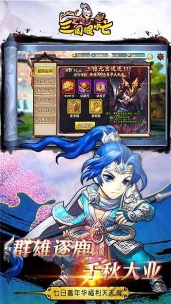 1、萌系可爱的三国世界,还有可爱的小貂蝉与你为伴,能够自由的进行游戏。