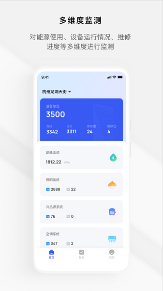 3.多维度监测,对能源使用、设备运行情况、维修进度等多维度进行监测