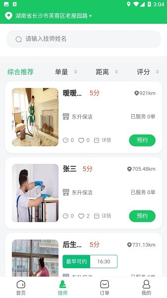 3、随时随地查看附近服务人员的信息,可直接拨打电话预约服务。