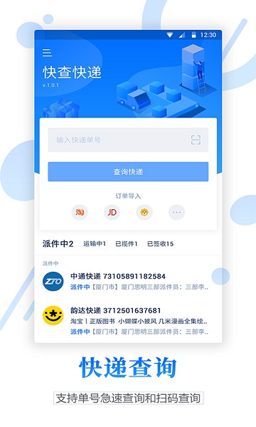 1、以便捷的方式查询快递,支持条形码扫描查询,就不用输入快递单号