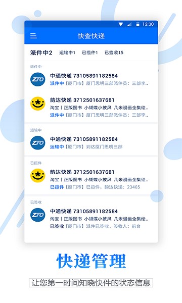 3、支持全系列的快递查询,如顺风,亚马逊,申通,韵达,圆通,天天