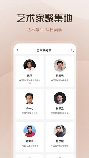 -关联名词随时搜索,轻松搜索国内外艺术家的详细信息。