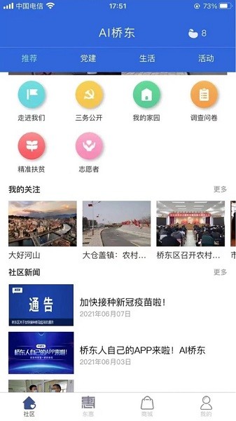 ai桥东app为小区住户们提供一站式的生活服务,app实时更新推送小区的最新资讯,通过这款应用可以完成缴费、门禁、购物等操作,多样化的功能服务,带来极大的方便。