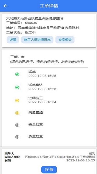 该系统主要实现对通信工程施工地现场的安全管理、施工管理,包括安全交底、高危环节管控、现场安全质量检查、现场定位管理、施工进度管理、施工信息(工作量)管理、施工资料(照片等)管理、施工材料管理、验收管理、工单评价管理、隐患管理等。
