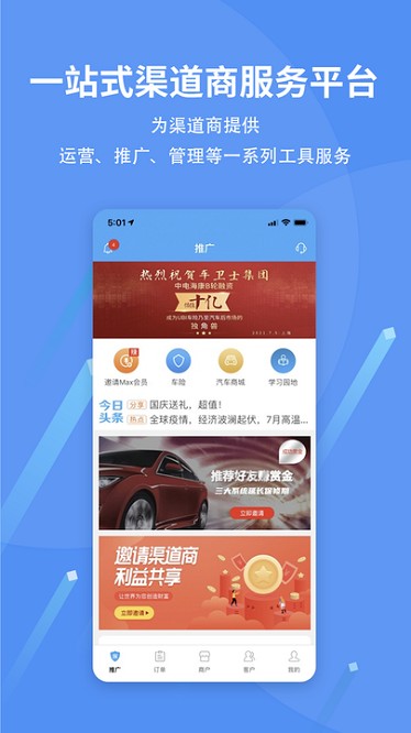 协助每一位销售人员管理自己的客户信息,让你随时针对客户的需求来提供服务产品,就可以促进订单的交易,针对渠道商或者服务商的APP平台,为渠道商提供汽车后市场营销科技赋能服务:线上随时可以跟进客户的需求,让用户可以提高自己的业绩。