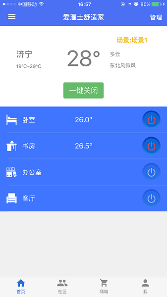 用户可以方便地切换自己的场所,通过场所包含的房间对智能设备进行管理交互