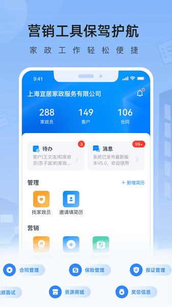 客户维护、阿姨匹配、在线合同签署,业务流程可视透明,提高家政公司工作效率。