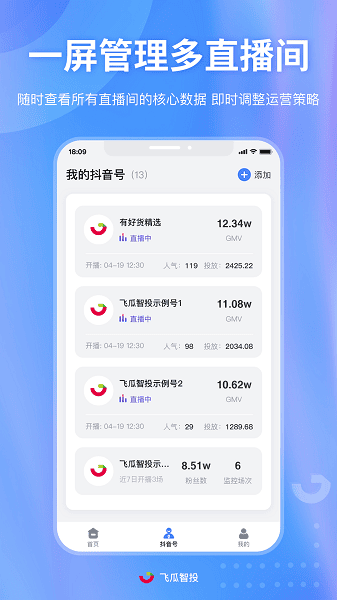 果集飞瓜旗下的直播间运营效率提升工具。包括实时监控抖音直播间流量来源、主播kpi考核、分钟监控投放消耗优化投产、一屏查看多直播间、直播回放等多达26+功能正陆续同步到APP当中!