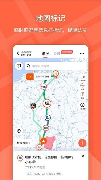 将油箱防盗,互帮互助,行车动态,加油等功能融合在一起,让货运司机可以便捷出行