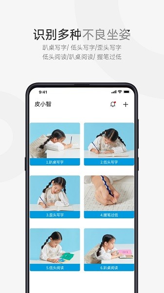 有了皮小智App,父母无需盯着孩子,在手机上即可查看不良坐姿记录和坐姿统计数据,了解孩子学习时的整体坐姿情况。