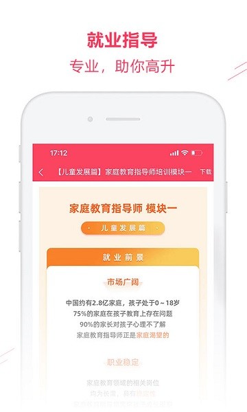 通过平台可以掌握0-18岁儿童成长规律,系统的学习教育学和心理学知识,让您拥有正确家庭教育指导能力。