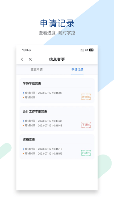2、申请记录,可以查看到自己的申请记录都可以为大家提供进度方便的查询。