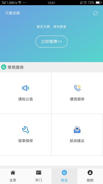 云智社区业主app能够帮助业主更好的体验各种物业服务,软件中能够实现物业管理,在这里业主能够便捷进行物业缴费,开门禁操作。了解最新的物业公告信息,快速进行投诉建议操作。
