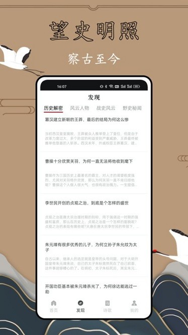本软件有大量的中外历史大事件内容,用户可以尽情的在历史长河中畅游。历史故事全集会带你俯瞰脉络,洞察因果,把握规律,弘扬中国传统文化,学习历史!