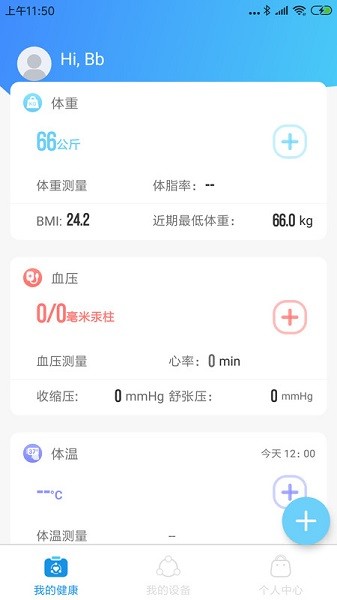 绑定完成后,就可以进行测量,可通过硬件设备测量体重、测量体温、测量血压等
