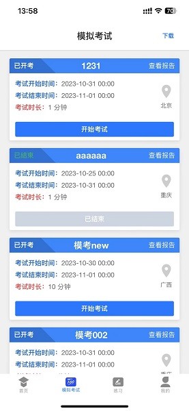 提供仿真考试功能、实时监测用户考试情况,让用户更好地了解自己的优劣。