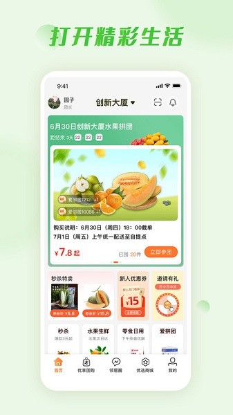 团购服务:为社区居民每日提供精选商品,天天有特价
