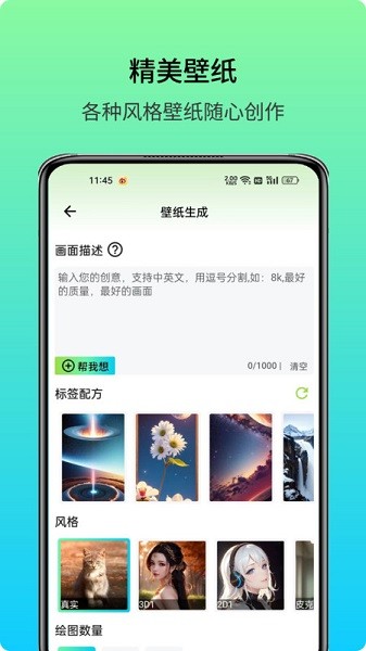 自由生成图片,只需要一段文字描述、几个关键词就可以创作出各种美女、风景、动漫、3D、赛博朋克、国风等各种风格的壁纸级别的艺术大作。