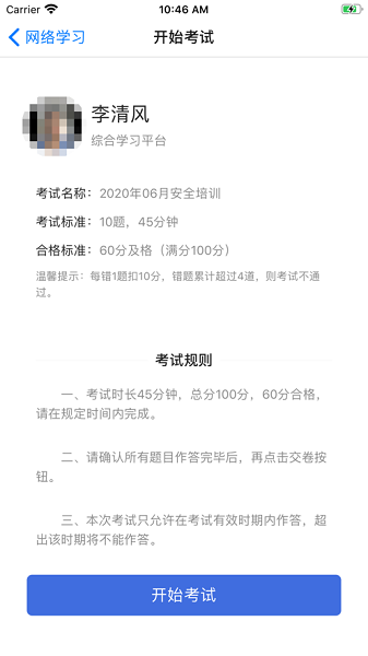 1、拥有考试考核,对你的安全知识储备进行测验时,快速进行考核;