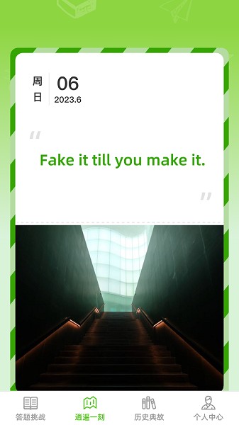逍遥一刻,读一刻语录,缓解心理疲劳。在日常生活中,我们常常会遇到压力和疲劳,需要一些放松和调节。通过逍遥一刻,您可以享受到一些解压语句和心灵鸡汤,帮助您舒缓压力,放松身心,让您的心情变得更加愉悦。