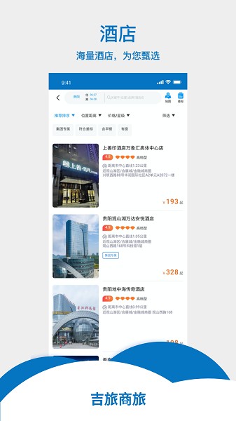 吉旅商旅app能够帮助用户便捷进行酒店机票,车票的预定,十分的方便快捷。软件中能够直观查看,快速进行搜索,出行更加方便。线上快速订购,了解最优惠价格。需要的用户不要错过哟!